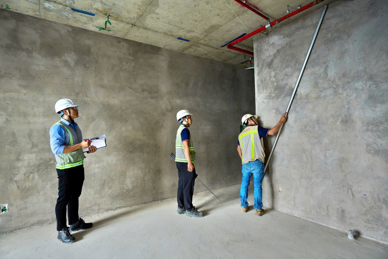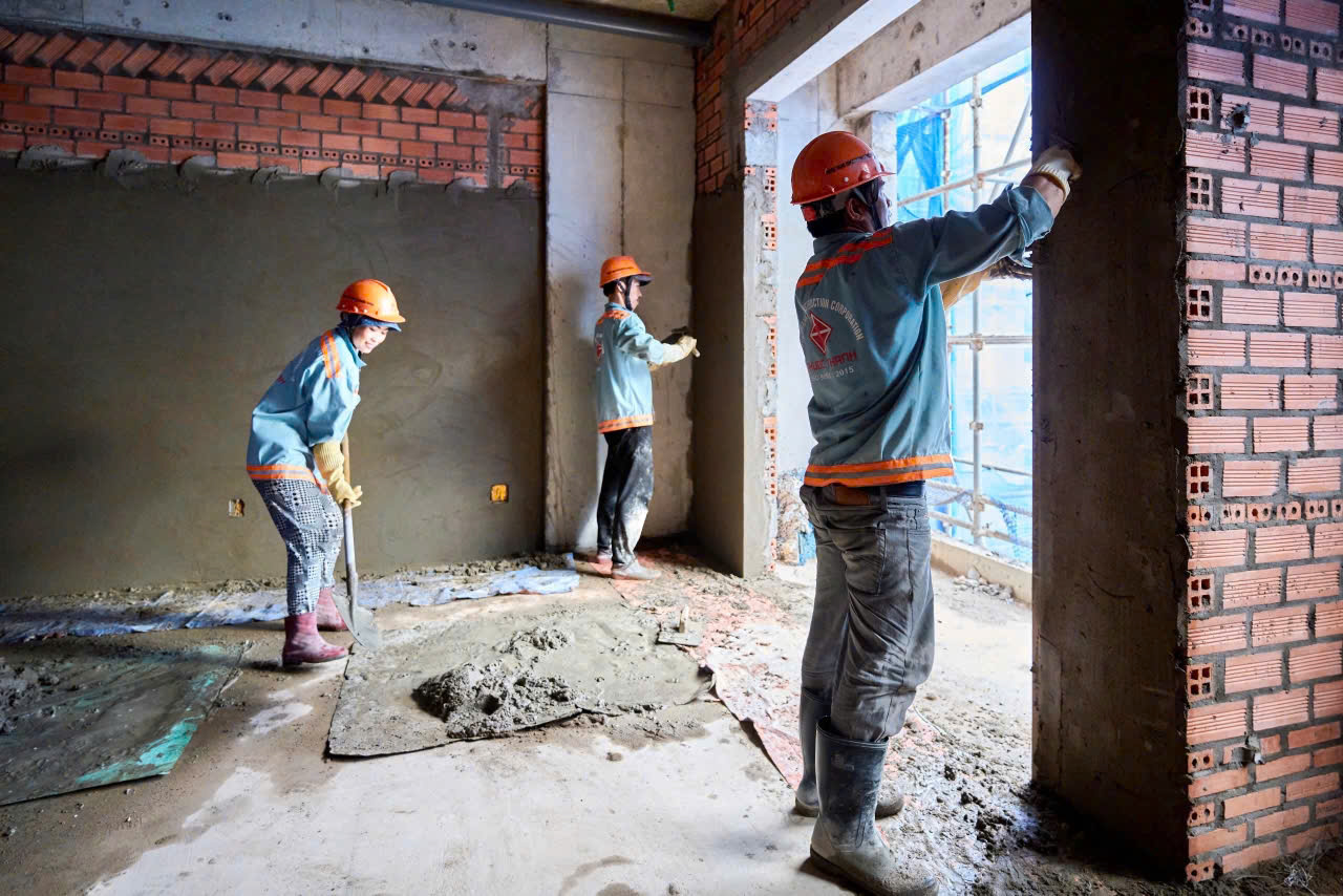 Dự án đang từng bước hoàn thiện, khi các hạng mục xây tường, tô trát được đẩy nhanh tiến độ. Mỗi phần công trình dần hiện rõ hình hài, đánh dấu hành trình kiến tạo tổ ấm bền vững cho cộng đồng cư dân tương lai.