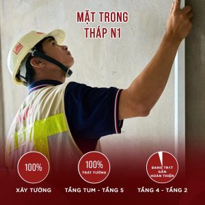 – Trát tường hoàn tất từ tầng 25 xuống tầng 2.